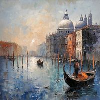 Impressionistische afbeelding van het Canal Grande in Venetië die eruitziet als een schilderij.