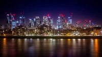 Een nachtelijk panorama vanaf de Theems richting het district Canary Wharf in Londen. Canary Wharf is een booming financieel centrum in de Britse hoofdstad. In het gebied staan drie van de hoogste gebouwen van het Verenigd Koninkrijk: One Canada Square (235 m), HSBC Tower en Citigroup Centre (beide 200 m). Canary Wharf ligt in de Docklands, de vroegere haven van Londen, in het oosten van de stad. Na een lange periode van verval, werd in 1988 begonnen met de realisatie van een nieuw zakencentrum in dit gebied.