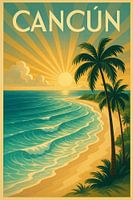 Over ‘Cancún Zonsopgang Sereniteit - Art Deco Caraïbische Kust Poster’ van Travel Shop