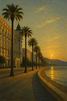 Cannes bij zonsondergang legt de Côte d'Azur vast op zijn meest filmische moment - wanneer de ondergaande zon gesmolten goud over de met palmen omzoomde promenade laat schijnen. De grootse gevels van Belle Époque architectuur gloeien warm tegen de vervagende blauwe lucht, terwijl de zachte zee hun reflecties weerspiegelt in lange,…