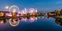 Reuzenrad en attracties op het Cannstatter Volksfest in Bad Cannstatt bij nacht, Stuttgart, Baden-Württemberg, Duitsland.