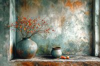 Details: stilleven, modern, Japandi, minimalistisch, natuurlijk, textuur, vaas, kweepeer, rustiek