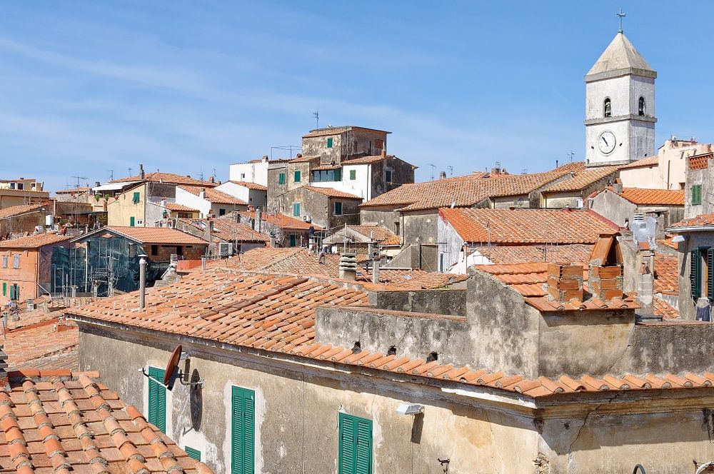 Uitzicht vanaf het piazza over het dorp Capoliveri, Elba, Toscane, Italië