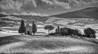 Het bekende Cappella della Madonna di Vitaleta in de glooiende heuvels van Val d'Orcia in Toscane.