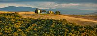De Cappella della Madonna di Vitaleta in de Val d’Orcia. Opname gemaakt in het gouden uur met warm strijklicht in het najaar