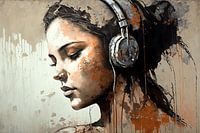 Dit schilderij is een krachtig werk dat ons herinnert aan de kracht van muziek en hoe het ons kan helpen mooie momenten in ons leven te herinneren. Het toont ons een jonge vrouw die zich verliest in de muziek, terwijl haar passie voor muziek en dans uitstraalt. Het schilderij nodigt ons uit om ons te laten meeslepen door de muziek en om ons even te onttrekken aan de realiteit. Het is een viering van de vrijheid die muziek kan bieden en een herinnering aan hoe we ons kunnen verliezen in het moment.