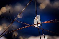 stukjes ijs in het riet op de Kampina Heide, Boxtel, Nederland