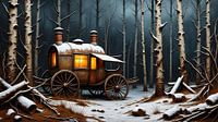 Een versierde zigeunerwagen staat 's nachts alleen in een bos