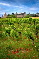 Carcassonne met wijngaard en klaprozen van Voss fotografie