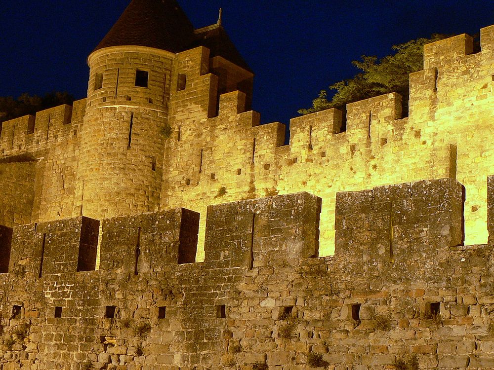 Carcassonne in de avond. Prachtig verlicht.