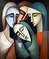 Abstract portret met vrouwen in kubistische vorm en met als thema liefde en zorg voor elkaar.