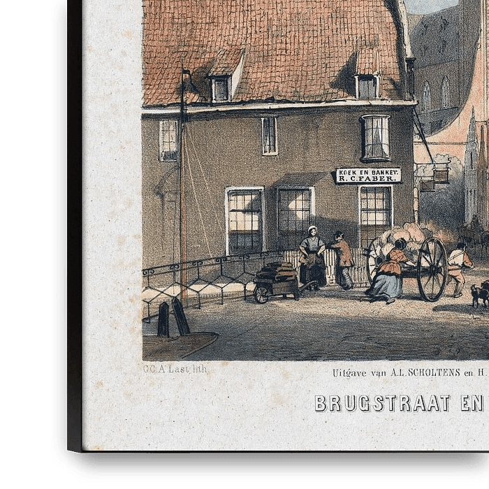 Koop Carel Christiaan Antony Last, Brugstraat en Der Aa-kerk in Groningen, na 1857 - 1869 van Atelier Liesjes op canvas, aluminium dibond, (ingelijste) fotoprint, behang en ArtFrame, op maat geprint in Fine-Art kwaliteit.