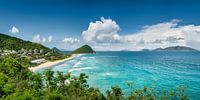 Tropisch strand in de Caraïben op het Britse Maagdeneiland Tortola. Strandfoto op Tortola Britse Maagdeneilanden. Landschap 210166ays
