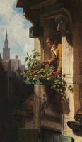 Spitzweg hield van scènes in deze pittoreske hoek van de oude stad van München, weg van het lawaai en de drukte van de mensen. Later in zijn leven had hij in dit gebied een appartement en studio. De oude vrijgezel stond vroeg op om de bloemen in zijn daktuin water te geven. De tijd op de kerkklok van St. Peter op de linker achtergrond…