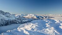In het hart van het Carlaveyron natuurreservaat in het Mont-Blanc massief. De zee van wolken bedekt de badplaatsen Saint-Gervais, Chamonix en Megève.
