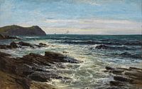 Carlos de Haes-Blauwe zee, zeerif, golven, Reef View, Antiek landschap