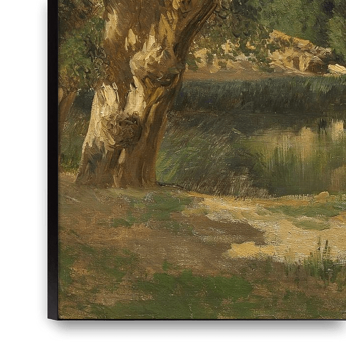Koop Carlos de Haes-Lagoon Landschap, wilde eendenjacht bij de rivier, Antique landschap als reproductie geprint op canvas, aluminium dibond, (ingelijste) fotoprint, behang en ArtFrame. Voor jou op maat geprint in Fine-Art kwaliteit.