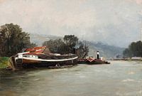 Carlos de Haes-Schip landschap op de Seine, Antiek landschap