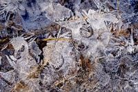 IJskristallen langs de oever van het Oude Maasje op een winterdag. Twee spannende macrofoto's zijn samengevoegd en versterken daardoor de grillige vormen van het ijs en de beeldvullende frisse compositie....(iets voor hete zomers.. )