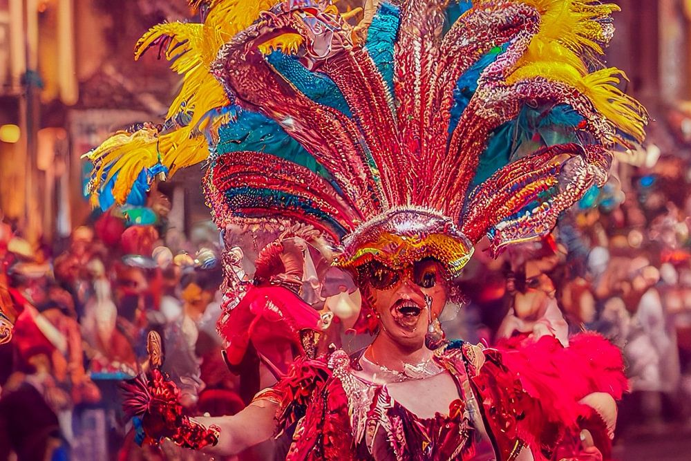 Carnavalsoptocht in de stad, illustratie