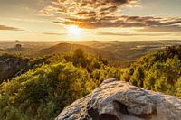 Carola rotsen bij zonsondergang, Elbezandsteen gebergte, Saksisch Zwitserland