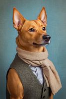 Met een elegante houding en een vleugje verfijning straalt deze Carolina Dog een charmante natuurlijkheid uit. Zijn opvallende oren en zachte gouden vacht geven hem een uitnodigende uitstraling. De stijlvolle sjaal en het gilet benadrukken zijn speciale karakter, terwijl hij in de camera kijkt met een wetende blik, alsof hij verhalen uit het verleden vertelt.