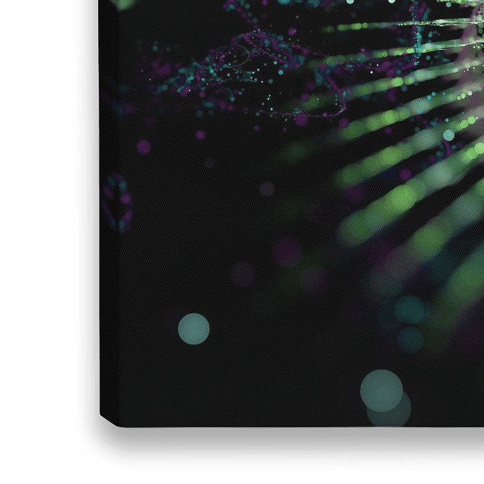 Dit werk toont een abstracte compositie die doet denken aan de beweging van een draaimolen. In het midden bevindt zich een zwarte cirkel, van waaruit concentrische ringen van gloeiende stippen in groen, paars en blauw zich naar buiten verspreiden. De rangschikking van de stippen creëert een visuele dynamiek die doet denken aan rotatie en ritmische beweging - als een draaimolen die langzaam en gestaag beweegt.