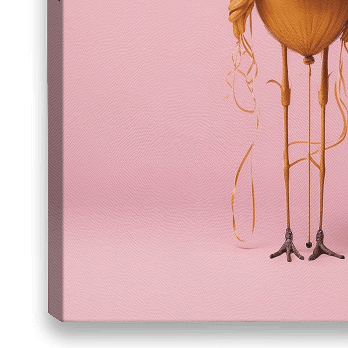 Golden bird on pink background.