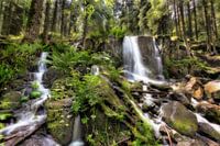 De foto toont de Merelle-waterval bij Lac de Gérardmer, gelegen in de Vogezen, en is vastgelegd met een lange sluitertijd. Hierdoor wordt het water van de waterval weergegeven als een zijdezachte, mistige stroom die elegant naar beneden stroomt over de rotsen. De rotsen en omgeving zijn scherp in beeld, waardoor het contrast tussen de…