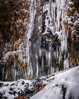 De bevroren Cascade du Saut du Loup vlak bij Mont Dore in de Auvergne, Frankrijk.