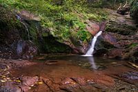 De waterval Cascade la Chaudière in de Ninglinspo in de Belgische Ardennen in de herfst met laag water