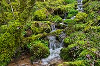 De foto toont een trapsgewijze, natuurlijke waterval. Puur natuur!