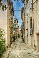 Castellar is een bergdorpje dat bestaat uit 3 straatjes. Het werk toont één van die totaal verlaten straatjes. Een uiterst stil dorpje waar het er op lijkt dat de tijd er heeft stil gestaan. Castellar ligt in het achterland van Menton, één van de beroemde kustplaatsen aan de Cote d'Azur in Zuid-Frankrijk.