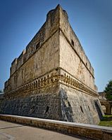 Een hoektoren van het Normandische paleis Castello Svevo in Bari, Italië