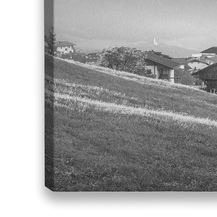 Koop de foto Castelrotto in Zuid-Tirol in zwart-wit van Manfred Voss, Zwart-Wit Fotografie op canvas, aluminium dibond, (ingelijste) fotoprint, behang en ArtFrame, op maat geprint in Fine-Art kwaliteit.