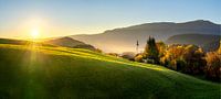 Zonsondergang bij het dorp Castelrotto op een prachtige alpenweide in Zuid-Tirol in het Sciliar gebied in de Dolomieten. Het dorp Kastelruth is ook bekend om de band " Kastelruther Spatzen " .