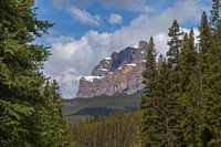 Zicht op de majestueuze pieken van Castle Mountain op de Bow Valley Parkway in de Rocky Mountains van Canada.