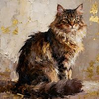 Dit prachtige kunstwerk uit de Cat Art Collection viert de koninklijke uitstraling en natuurlijke elegantie van de Noorse boskat in een luxueuze, museumwaardige schilderstijl. De langharige kat zit majestueus, met zijn volumineuze manen die een evenwichtig gezicht omlijsten en zijn bossige staart die gracieus om zijn lichaam is gekruld.…