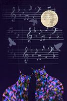 Katten in het maanlicht, kinderkamer, slaapkamer, duisternis, eclips, magie, mystiek, kattenliefde, moonlight sonata, fantasie, digitaal schilderij, , maannacht, volle maan, digitale kunst, valentijn, valentijnsdag, muziek, noten, vogels, phanatasy, spiritueel, motivatie, typografie