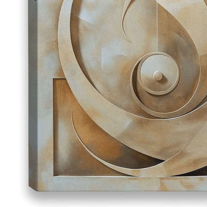 Abstract portret van een kat in naturel tinten met vloeiende vormen, kubistische elementen en een grove textuur.