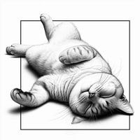 Digitaal vervaardigde zwart-wit illustratie van een slapende kat.