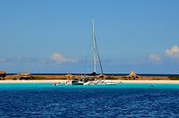 Deze catamaran, de BlueFinn, is op 14 maart 2020 gefotografeerd bij Klein Curaçao.