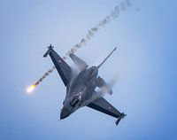 Danish F16 schiet een flare en doet barrel roles tijdens de luchtmachtdagen