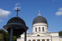 Chisinau Moldova Orthodox Cathedral (Catedrala Nasterea Domnului Clopotnita) on Piata Nationala.
