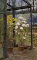 Catharina Kool,Chrysanten in een kas ,Bloemen van finemasterpiece