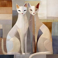 Portret van twee katten in zachte naturel en aardetinten.