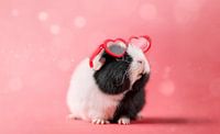 Decoreer je leefruimte met een betoverende dosis schattigheid en charme met deze schattige foto van een zwart/witte cavia die een rode hartjesbril draagt.