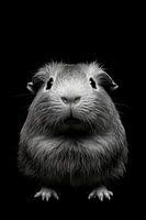 Een onverwachte blik op een nieuwsgierige cavia, wiens zachte rondingen en grote, glanzende ogen onmiddellijk in het oog springen. Het sterke contrast met de donkere achtergrond versterkt zijn onschuldige uitstraling. Ideaal voor een woonkamer, het brengt een vleugje speelsheid en warmte in de kamer.