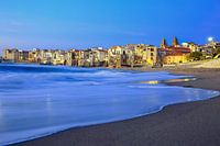 Blauw uur aan de kust van Cefalù op Sicilië
