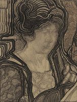 houtskool, penseel in zwart en goudverf op strokarton, 1906 - 1925